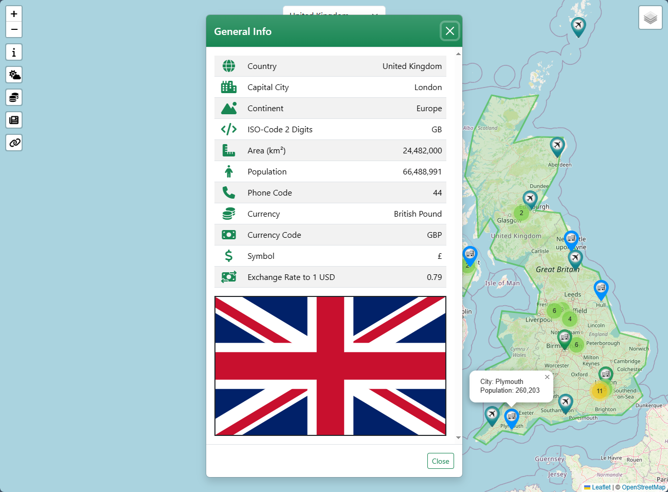 An interactive web app designed to help users explore countries globally. The app integrates